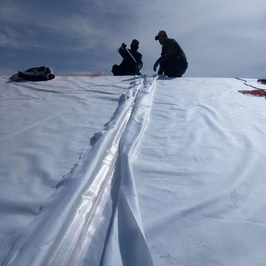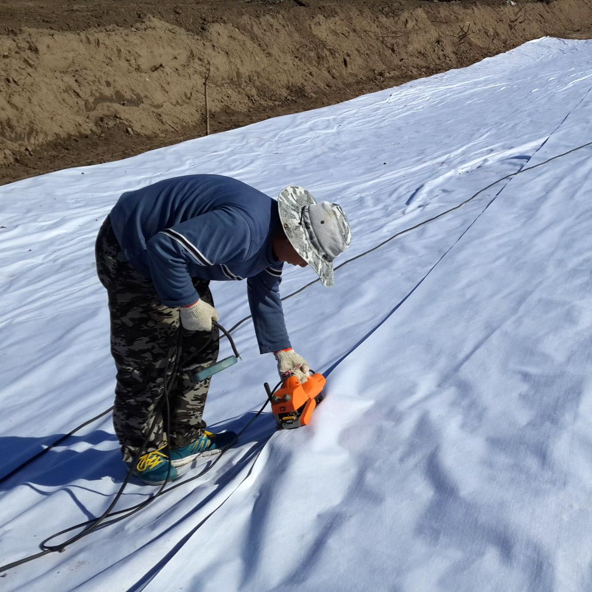復合土工膜是用土工織物與土工膜復合而成的不透水材料,它主要用于防滲,復合土工膜分為一布一膜和兩布一膜、寬幅4-6m,重量為200-1500g/m2,抗拉、抗撕裂、頂破等物理力學性能指標高,能滿足水利、市政、建筑、交通、地鐵、隧道等土木工程需要。由于其選用高分子材料且生產工藝中添加了防老化劑,故可在非常規溫度環境中使用。