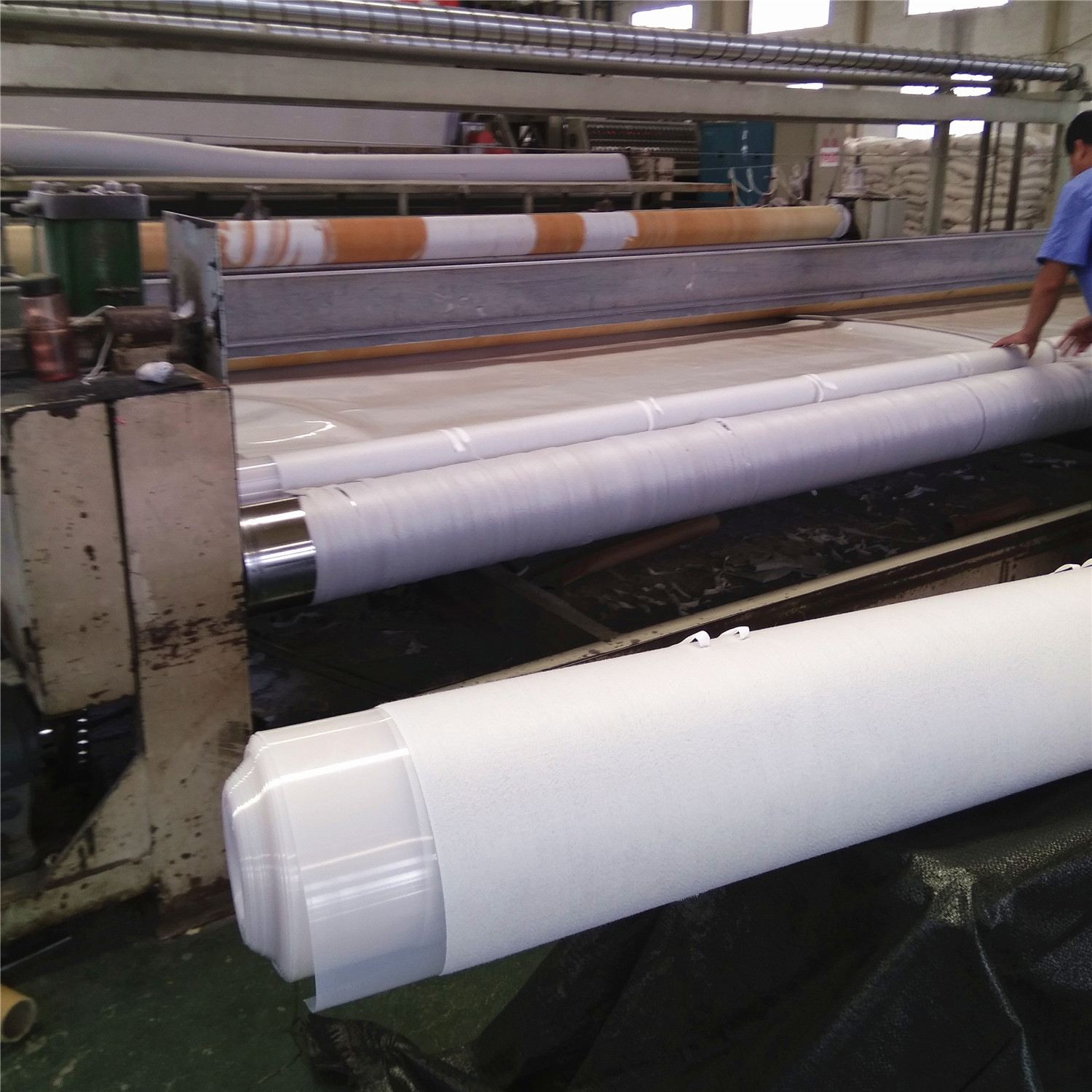 2、根據(jù)池塘的長度和寬度,跟我們廠家提前預(yù)定好防滲膜的尺寸,以便于施工,土工膜一般采用高溫加壓焊接的方法連接,但是當溫度不夠高或加壓不足時,連接可能不牢固,在風的作用和紫外線的照射下,搭接性能下降,最終導(dǎo)致搭接的土工膜剝落。工膜鋪設(shè)在開挖襯砌成型的水池池壁和池底上,形成完整封閉的膜防滲系統(tǒng)。